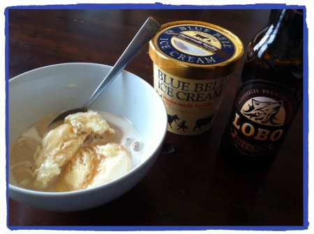 The Lobo Negro is a dark brown lager, which means the malted barley has been roasted. This 5.5% ABV lager pours a dark brown color with a light brown head and subtle carbonation. The aroma and taste similarly share nut and roasted cocoa notes that dominate the entire experience. It’s well balanced and smooth. I enjoyed this beer and usually don’t prefer dark lagers. Have some fun one-day and pour it over a couple of scoops of Blue Bell’s Homemade Vanilla Ice Cream.