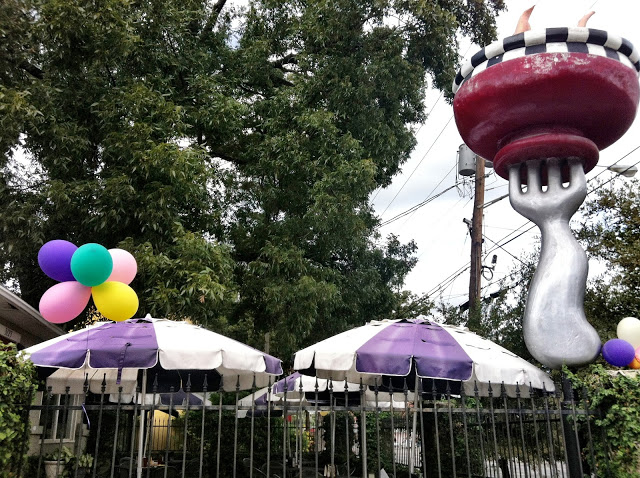 Off of Broadway, a little South of the Witte Museum, sits one of the best sandwich spots in town. W.D. Deli is located in an old two-story house built in the 1920s; you’ll know you’re in the right spot when you see the gigantic fork statue at the entrance (I’ve never been to a place with a giant fork that I didn’t like). There is a shaded patio at the front with purple and white umbrellas; inside the deli has a funky feel with collector’s plates and other ephemera on the walls.