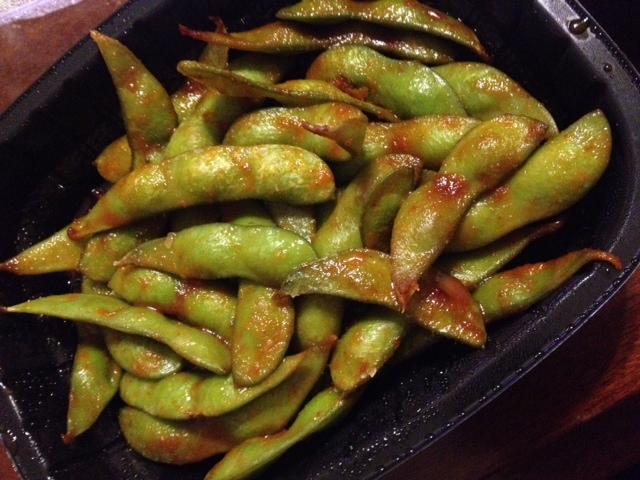 Kumori has four locations in the Rio Grande Valley, which is where Adriana is from, and the owners decided to bring the restaurant to San Antonio. The restaurant, located in the Stone Oak area, is very hip inside with dim lighting, sleek furniture, modern artwork and a nice bar area. As far as sushi goes, it is reasonable priced. Last night I decided to order to-go from Kumori because I finally got tired of turkey and dressing leftovers. I ordered the spicy edamame, the Bonga Bonga roll and the Maui Wowie roll.
